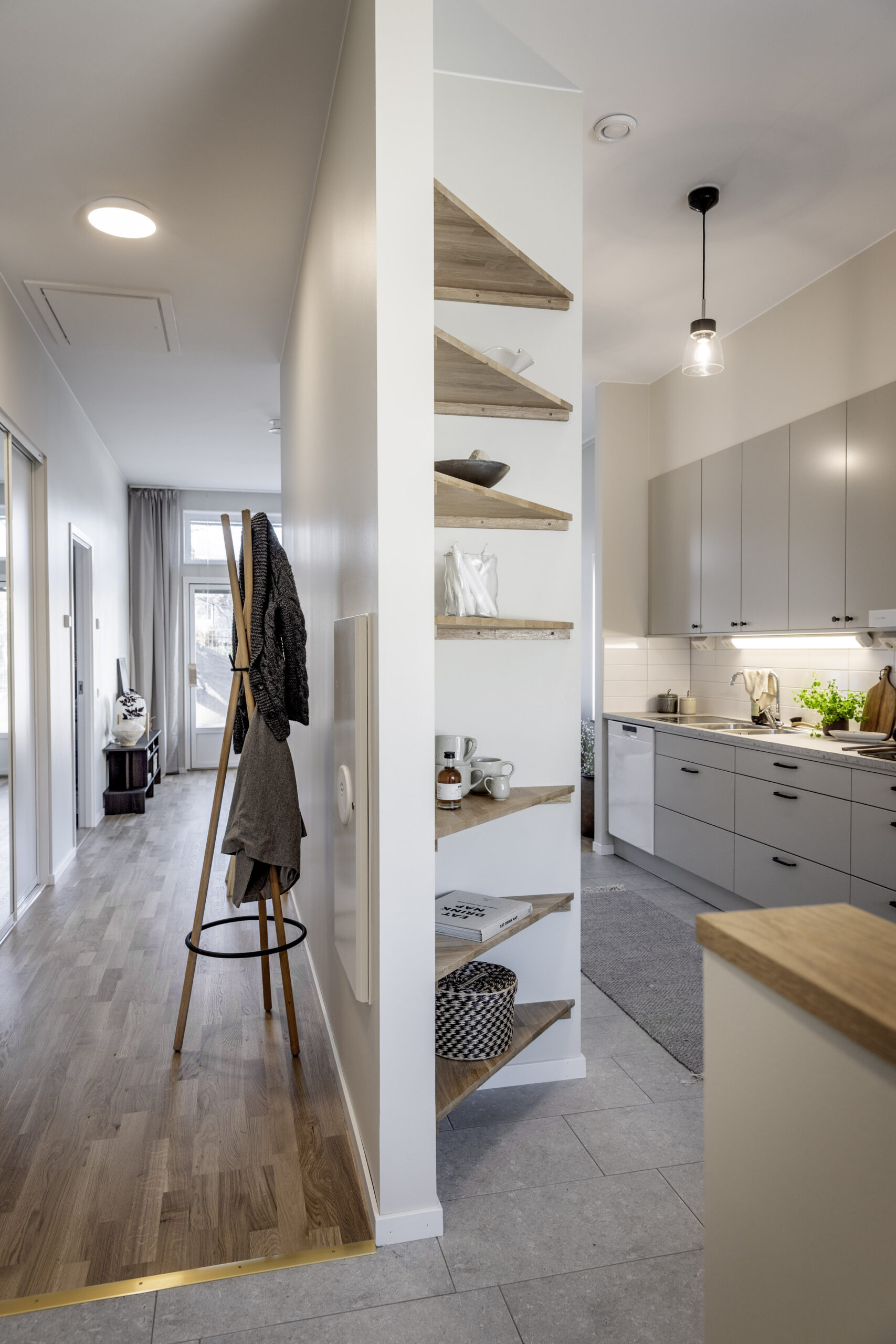 - Golv i hall, kök och duschrum är klinker – och parkett i övriga rum